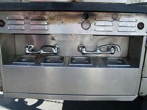 - Although the sinks are small, there must still be a hand wash sink and a three-compartment (wash/rinse/sanitize) sink. There must also be a faucet. See examples below.