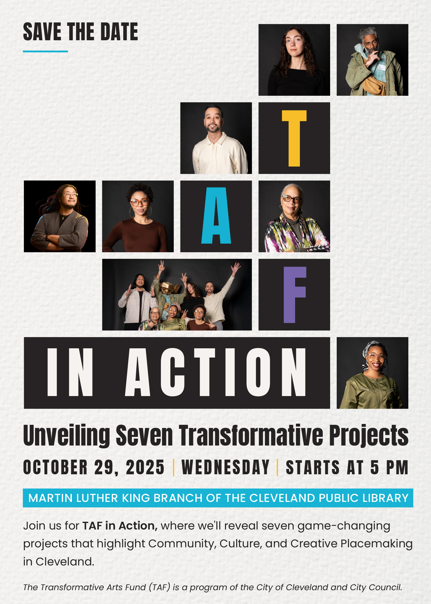 Each funded project was developed through a collaborative application process between a Cleveland-based artist and their chosen institutional partner, with award budgets ranging from $312,185 to $482,500. Together, these projects imagine a future where the arts lead with powerful ideas, shaping transformative experiences for residents and visitors alike.